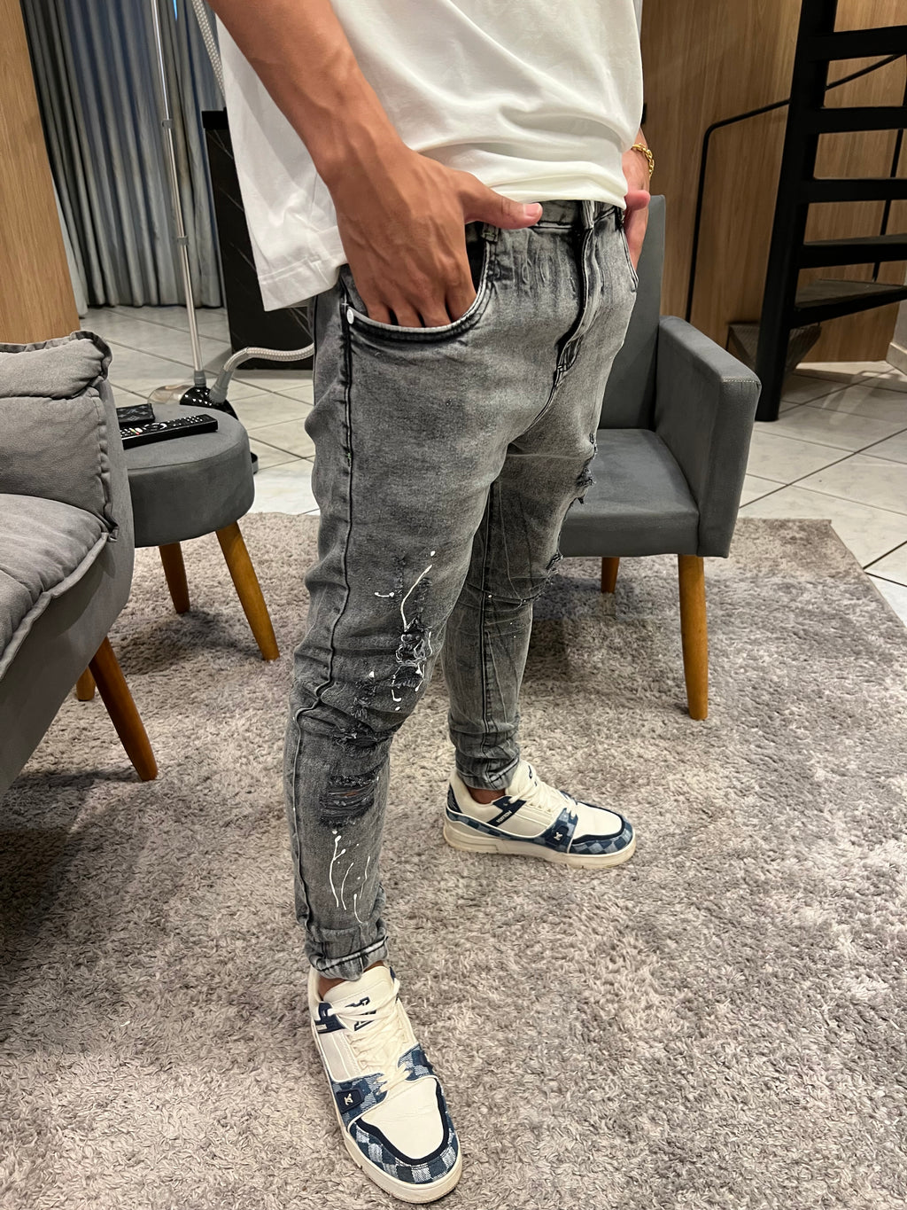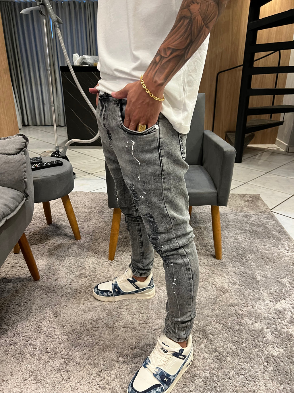 Uma calça skinny é um item de vestuário moderno e elegante que se destaca por suas características ajustadas e o caimento justo ao corpo. Ela é conhecida por realçar a silhueta e criar um visual sofisticado e contemporâneo. Aqui está uma descrição de uma calça skinny:
